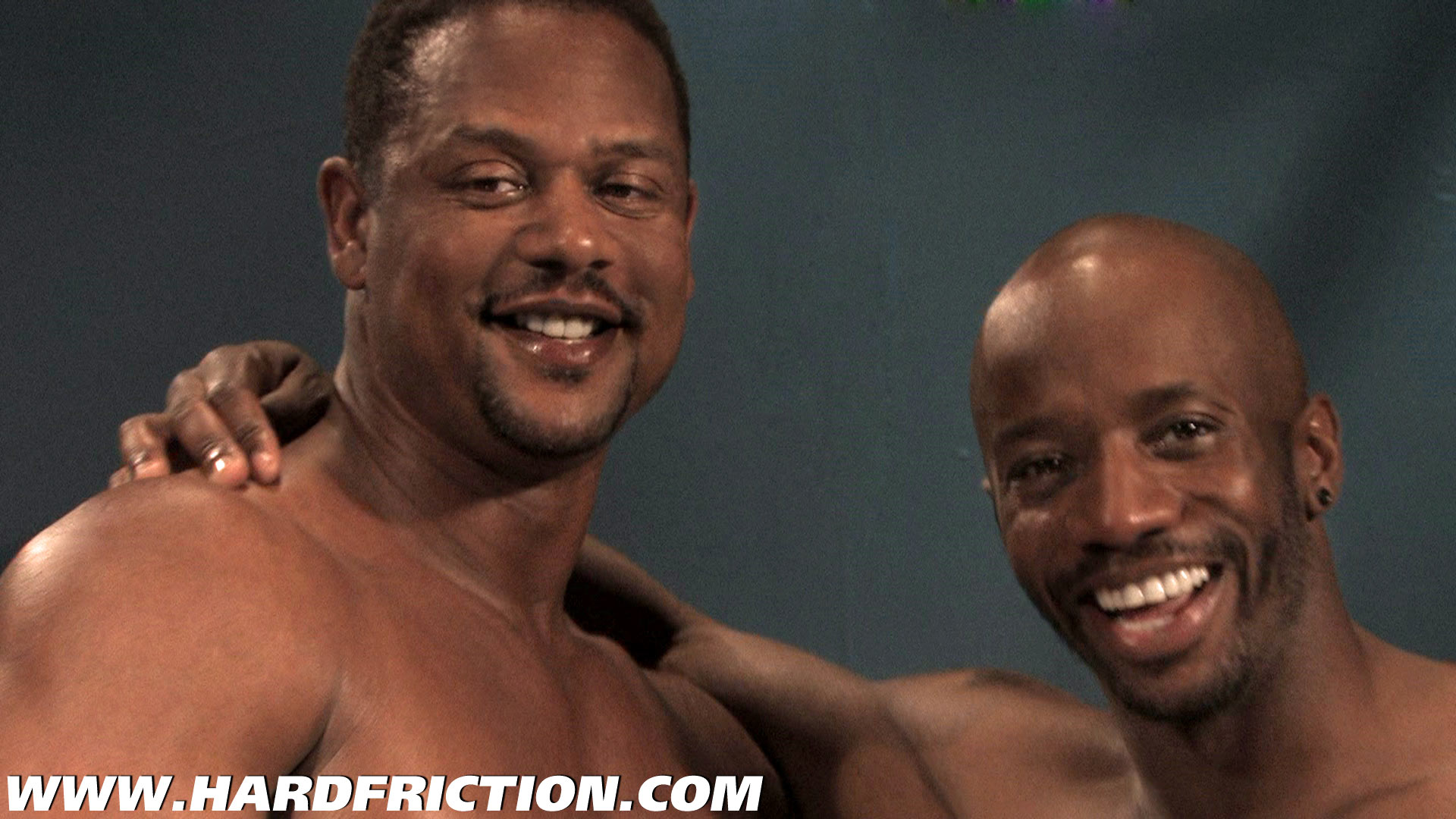 Race Cooper and Aron Ridge are live and naked in the Hard Friction studio. Race is quickly on his knees before giant Aron gulping down his massive cock. This is a very big man with a very large dick! Aron returns the favor as Race flexes his muscles as he groans in ecstasy, his own big cock throbbing straight up at attention. Aron flips Race around so he can warm up his hole for fucking. It is gonna get stretched open! Race bounces his bubble butt in anticipation as Aron licks his hole before filling it with his big meat. This makes Race a happy man! Aron pounds him doggie-style then lies back so Race can ride that big pole until both guys are ready to blow their creamy loads!