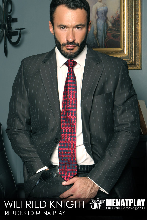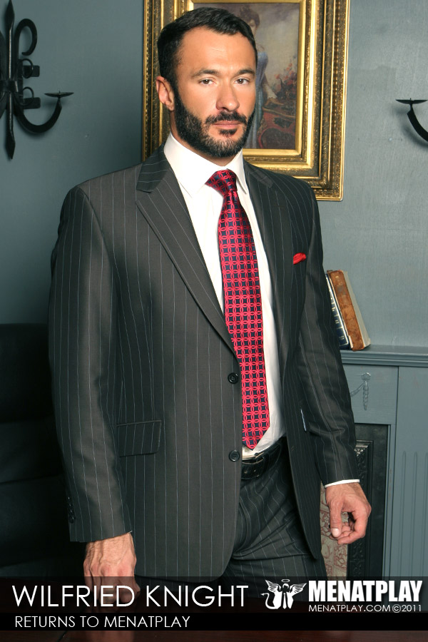Wilfried Knight is back! Looking every inch the power executive in his dark grey pinstripe, Wilfried looks even hotter than he did in his leather gear in ‘RED’ and it seems that the power of the suit has gone to his head, as well as his cock as he is hard and bursting to give us a red hot show in his private study. Wilfried locks the door and starts working on his hardening bulge, stroking the material and slowly unzips his gorgeous, juicy cock from his suit trousers, playing with his foreskin and pulling it over his wet shiny head as he moans with pleasure. Wilfried then moves his hands down to his big meaty ass to tease with his tight hairy hole with his fingers. Pulling his beefy cheeks open to give us a juicy close-up as he bends over his leather chair. And to top it all he gives us a hot, creamy cumshot lying fully naked across his desk. Wilfried is exactly what a MAP Man is all about. And boy does he knows it!