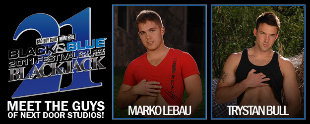 Join Next Door Studios and our Exclusive models during the official Blackjack Party @ Black & Blue in Montreal, Canada! Stop by our booth located near the entrance of the festival on October 9th and picture taken with exclusive models, Trystan Bull & Marko Lebeau during this meet and greet opportunity. Blackjack begins on Oct. 9th @ 10pm and last until 12noon the next day! Don’t miss this opportunity to party hard with the guys Next Door!