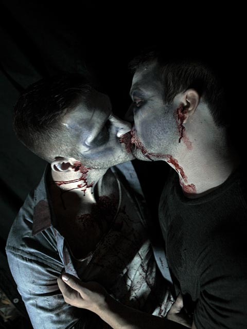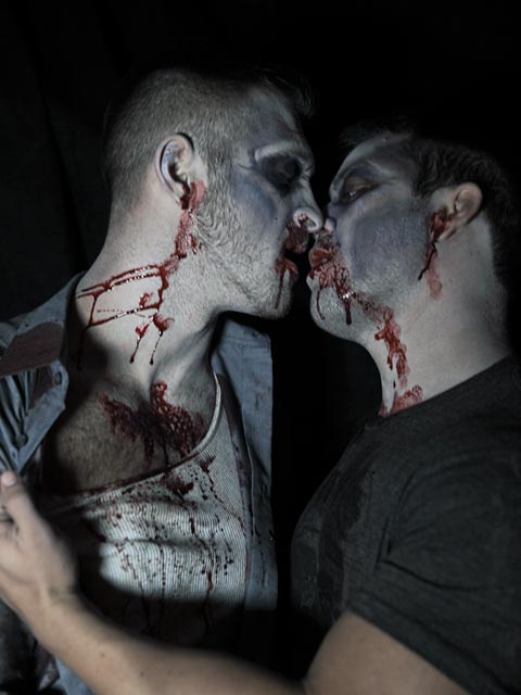 It was a hot and steamy Halloween night when Eric Pryor set out to have a little fun. His friend Caleb Strong had invited him out to a Halloween party with his fuck buddies Derek Atlas and Paul Wagner. But they never made it to that party. Instead, they invited Eric back to Caleb’s house for an all hallows’ eve orgy. Deciding that group sex would be a lot more fun than a party, Eric arrived at Caleb’s house with a raging hard on. But something seemed a little off. The three gorgeous hunks looked so hot, all big hard muscle and sexual heat. The next thing he knew, Eric was surrounded by roaming hands, touching and feeling every inch of his body. It must have been freezing in Caleb’s house before he got there because all three of them were cold to the touch, but Eric didn’t care, he had enough heat for all of them. Mouths and lips nibbled and licked their way down his body and eventually found their way around his huge rock hard ! dick. He was getting it from both ends and after a while he couldn’t tell who was doing what and he didn’t care. Still, in the few moments of clarity through the sexual haze of this hardcore gang bang he couldn’t shake that there was something not quite right. And he was correct. And little did he know that he was soon to find out exactly how not right things were.