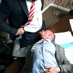 When Scott takes Issue with Spencer’s annoying habits at work the two decide to work it out. Well, That’s to say Spencer uses and abuses Scott throwing him to position like a rag doll, tying his hands behind his back before ripping the seat out of Scott’s tight fitting trousers so that he can finger and fuck Scott till he squeals! Young Scott doesn’t stand a change against the hulk of an American and gets the rest of his shirt and suit ripped from his body before another onslaught of hard fucking from Spencer . Scott Hunter raped and pounded, Spencer Reed driving in to him like a juggernaut – now that’s what we like to see!