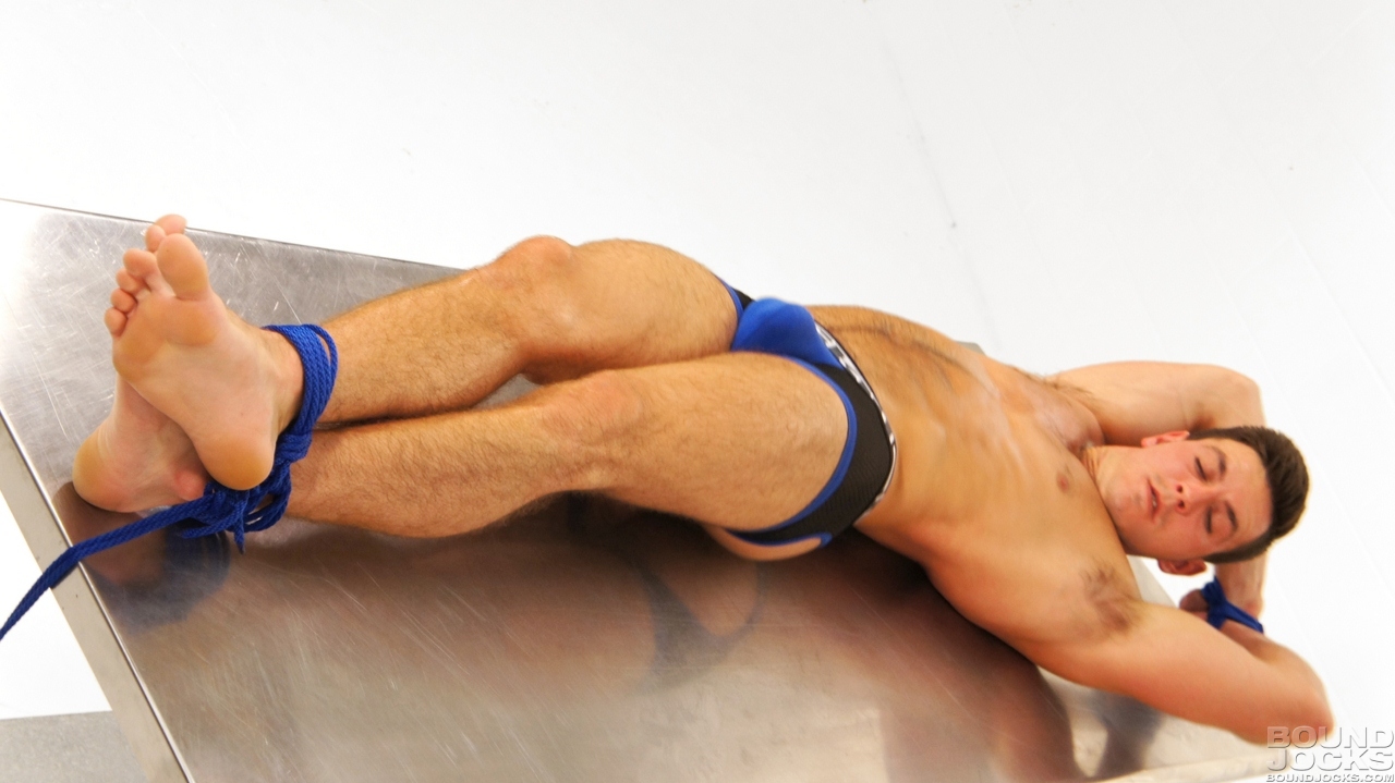 British jock Paddy O’Brian is too good looking for his own good. He wakes up to find himself stretched out on a metal table with his hands tied above his head and ankles tied to the other end.