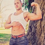 There is something so virile about a shaved head on a hard body. Like Mr. Clean or Vin Diesel. This is what I was thinking about when I first met Jason Stonebrook. We met up in North Hollywood Park. He had worked up a bit of a sweat that was just starting to show through his white tank top. He greeted me with a firm handshake and pierced me with his steel gray eyes. Then he smiled, and suddenly this muscle bound action star turned into a sweet teddy bear. That is the appeal of Mr. Stonebrook. He is so masculine and sexy, but sweet and tender all rolled up into one hard muscled body of perfection. I asked him if he was nervous. He admitted that he was. So I took him back to set, and asked him to take his time and just do what comes naturally. It turns out he did not need any time at all. Once his clothes came off, his dick stood at attention and he started to touch all over his body. He flexed his muscles off as he beat his hard cock. He kept looking into the camera. He knew that people were going to be watching this video, and he liked it. He flipped over and began humping the couch. His bubble butt would flex at each thrust. I could tell it had been a while since he had been able to get off. He flipped over on his back and started furiously pounding at his knob as he rubbed his chest. He shot hard and it landed all over his abs, chest and hand. He looked into my camera and licked the cum up. This boy is dirty. And I think he might be ready for more.