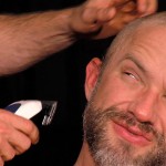 Sitting in a chair with his cock at attention, Dirk Caber feasts on hairy muscle man Matt Stevens—a shaved-headed hunk brandishing clippers. Dirk buries his salt-and-pepper beard to the base of Matt’s thick cock. “Ready for your haircut?” asks Matt, who starts to buzz the sucker’s head. Dirk continues to feast, his hair falling to the floor by his leather boots. Dirk looks up and smiles, Matt’s hard cock grazing his bicep. Matt puts cream on Dirk’s head and uses a razor to shave the stubble. Dirk jacks, then sucks Matt some more before he gets his own thick dick swallowed. Dirk bends down for a kiss, grabbing Matt’s ass—which he then eats. Dirk slides his cock in (“Fuck that hole!” yells Matt), reaching his arms around to rub the bottom’s pecs. Matt sits down on the verbal Dirk (“Slide all the way up and down!”), the top reaching a round again to feel the hunk’s bod. Matt releases his load, then gets behind Dirk to rub his nips and kiss him as the top squirts.